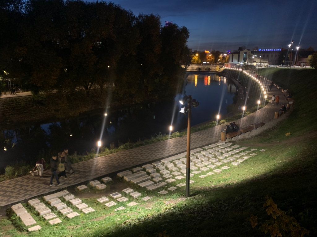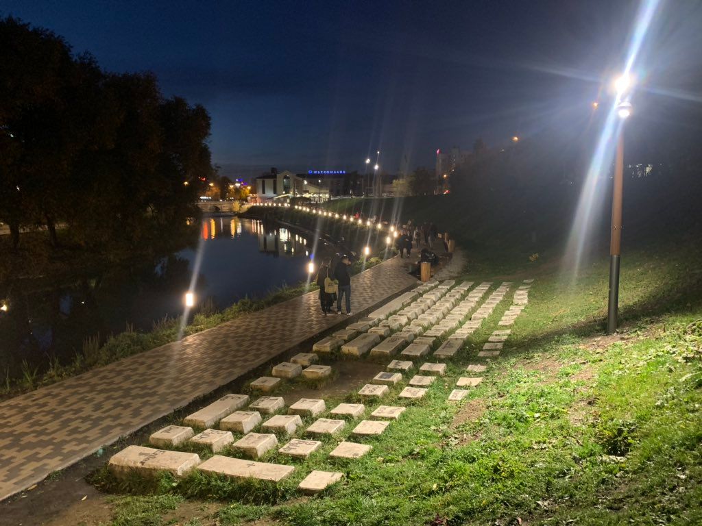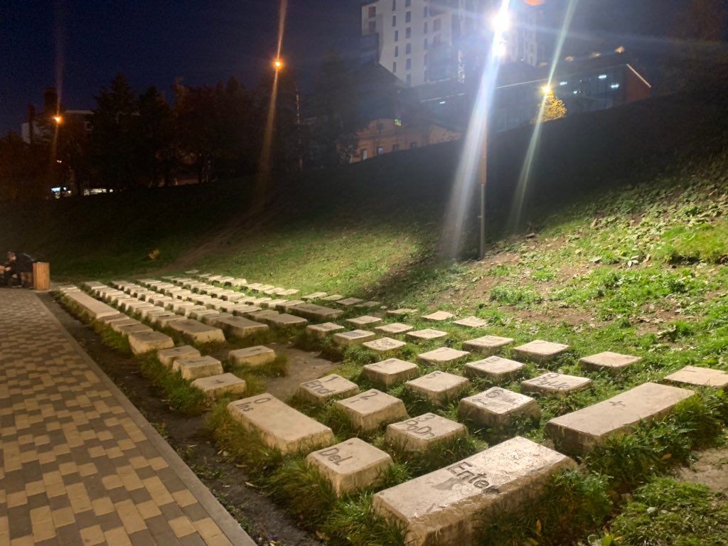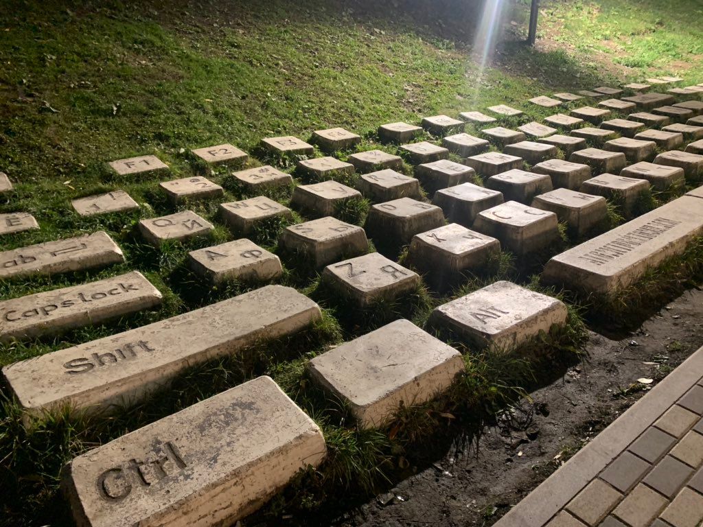 : またこの地に舞い戻ってきた。ロシア、エカテリンブルクのQWERTYキーボードモニュメント!久々の聖地巡礼だ!なんか街灯がついて進化してる!