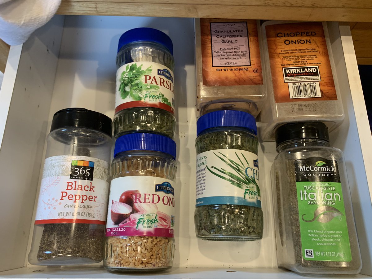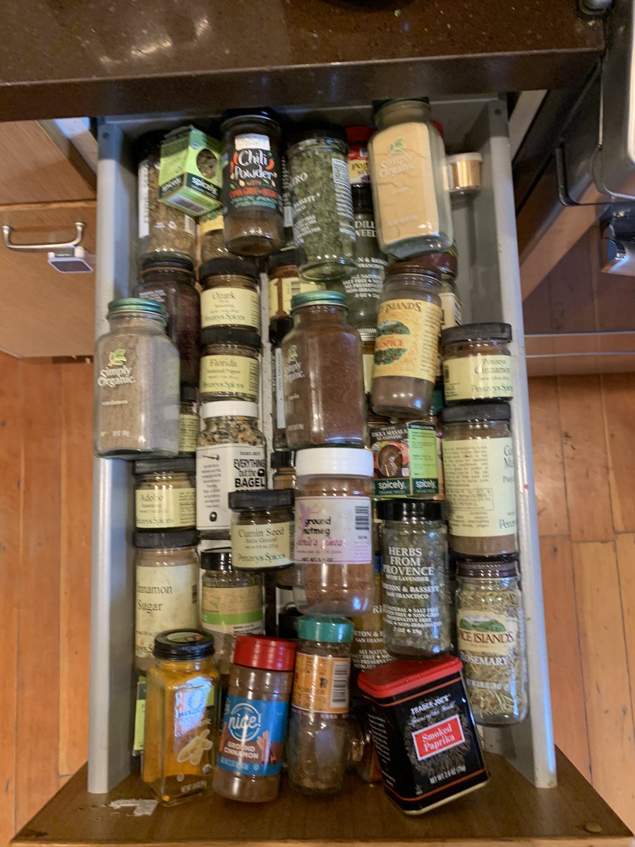 Right now, we do not have enough drawer space for our spices. and are desperately short on cabinets. :/