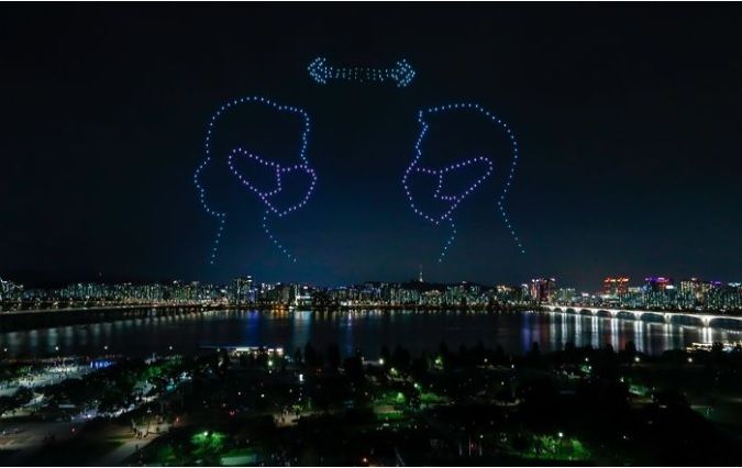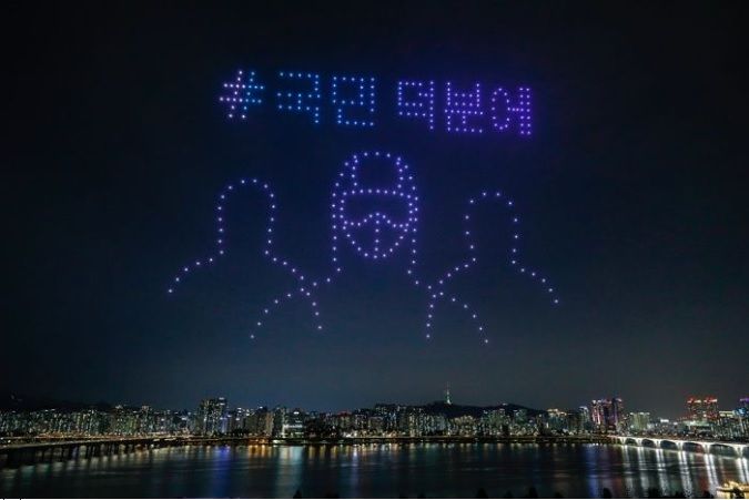 : Tonight in Seoul. Hundreds of drones delivering government messages.
