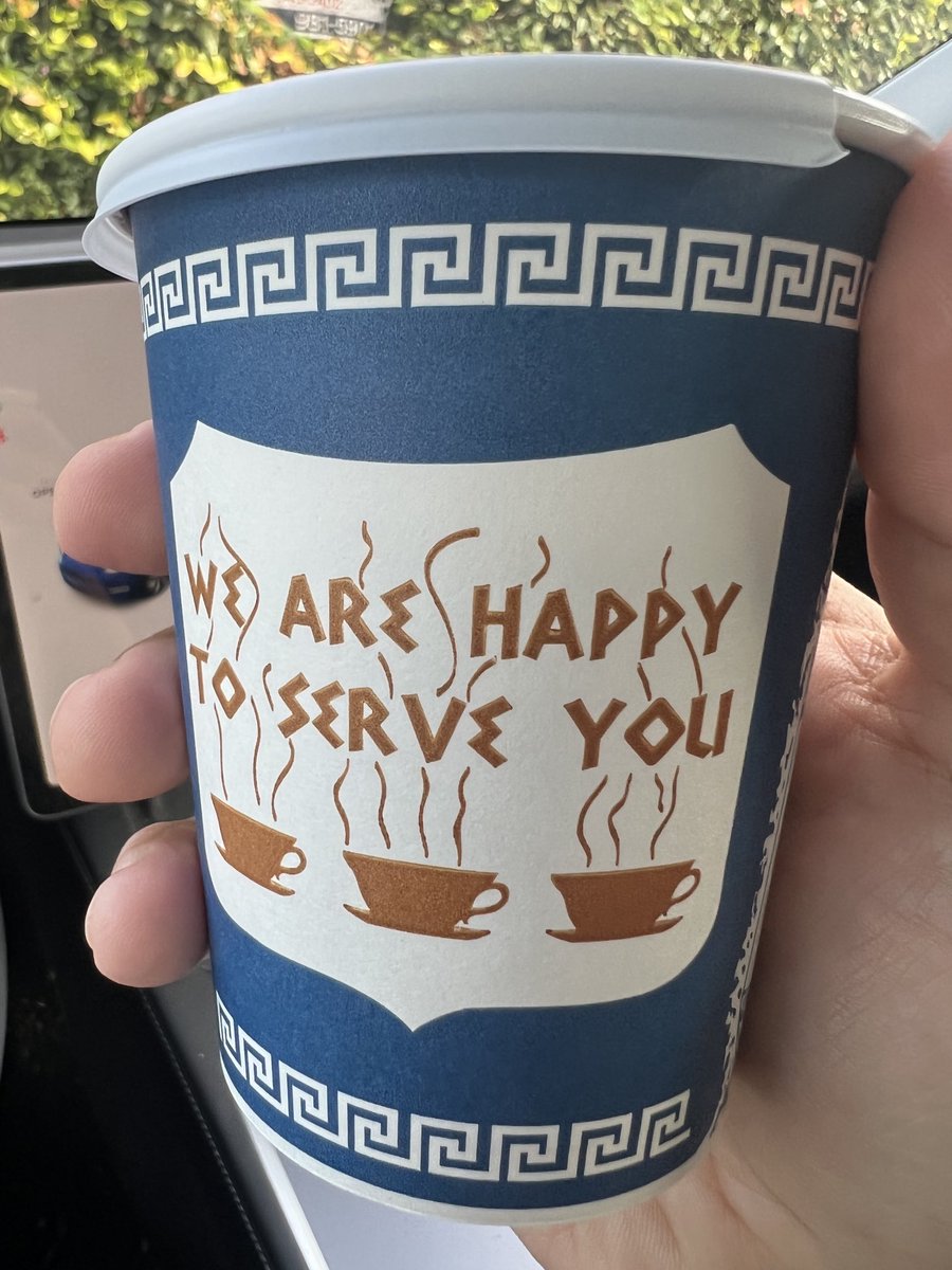 The coffee is fine, but the Anthora imported from New York is a great flex.