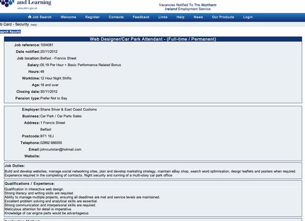 : Advert for Web Designer/Car Park Attendant. Yes, combined. ”