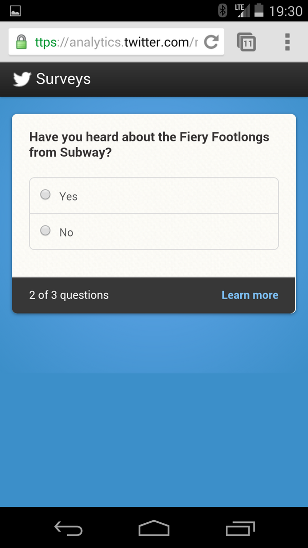 Interesting. Twitter just promoted a tweet with a 'brand survey' at me