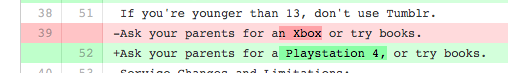 Favorite line from the diffs of Tumblr's updated Terms of Service: