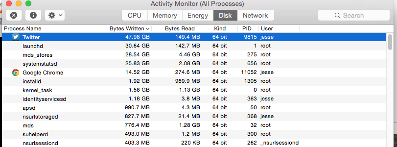Do I even want to know why Twitter has written 48 Gigabytes of data to disk since I rebooted 17 days ago?