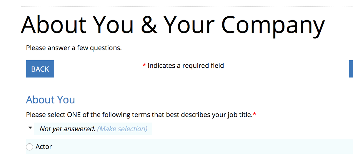 The job title dropdown for CES leads with the role that's probably closest to true for a startup founder: