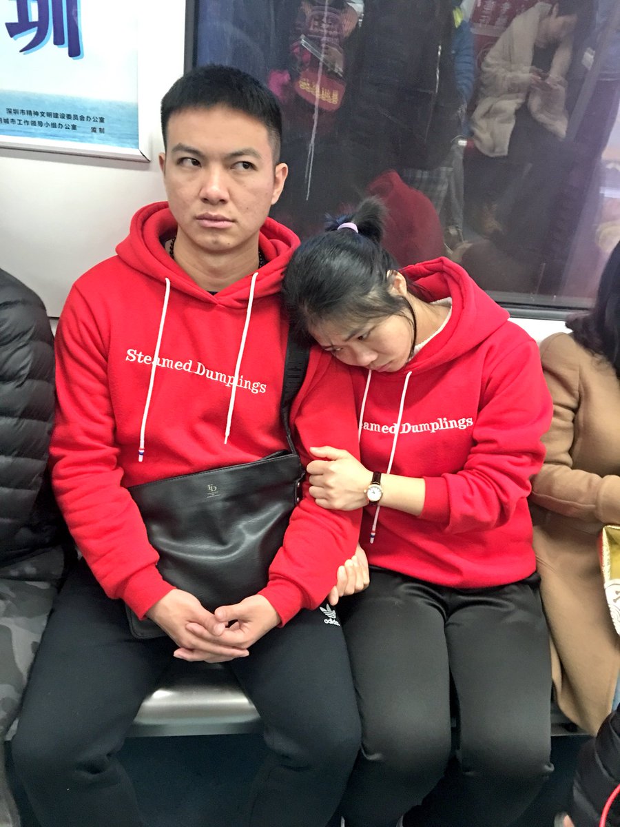Seen on the Shenzhen subway. There’s a story behind those sweatshirts. I wonder what it is.