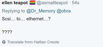 @asmallteapot @dr_memory This is just someone in Twitter's engineering org making a VERY subtle reference to this famous quote, right? "SCSI is *not* magic. There are *fundamental* *technical* *reasons* why you have to sacrifice a young goat to your SCSI chain every now and then" - John F. Woods